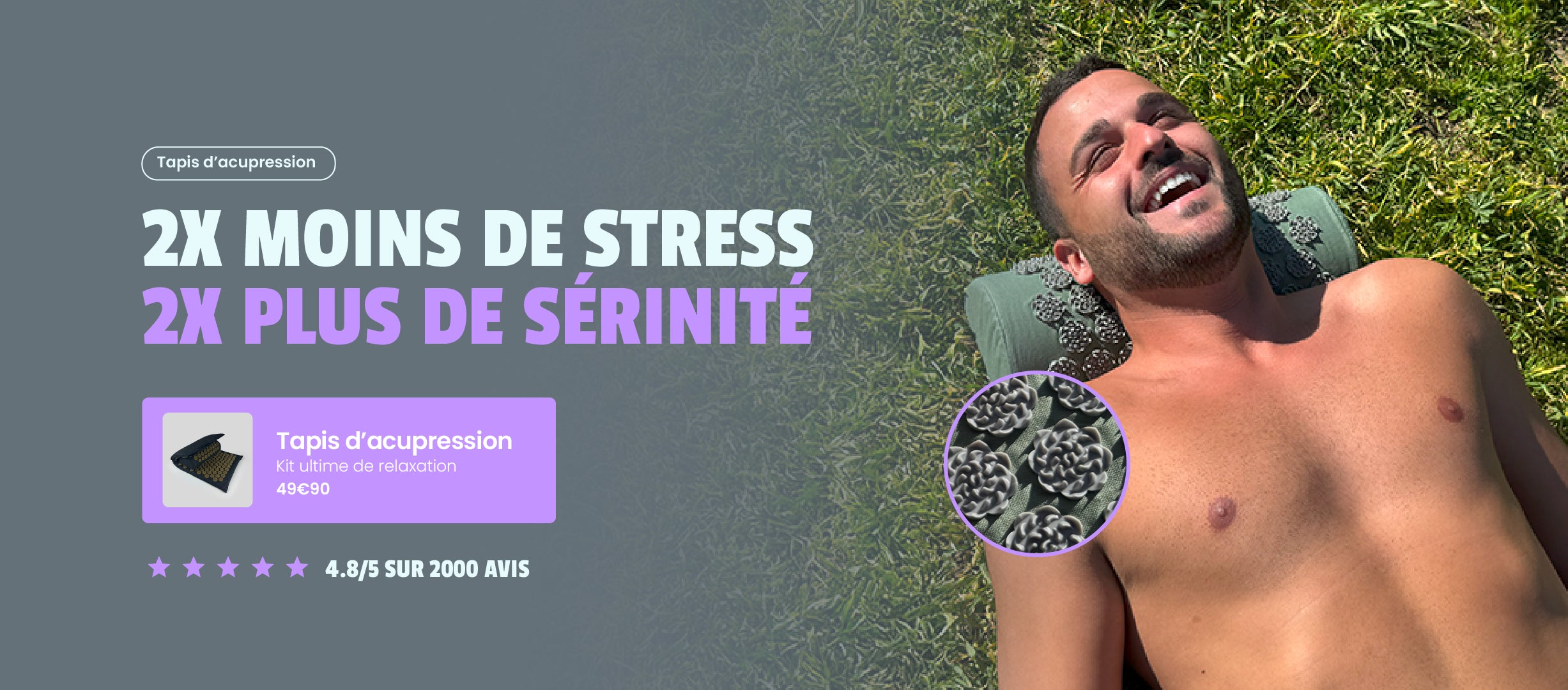 Offrez à votre corps le bien-être qu'il mérite avec notre tapis d'acupression, la solution naturelle pour soulager stress, douleurs et tensions musculaires en un instant.